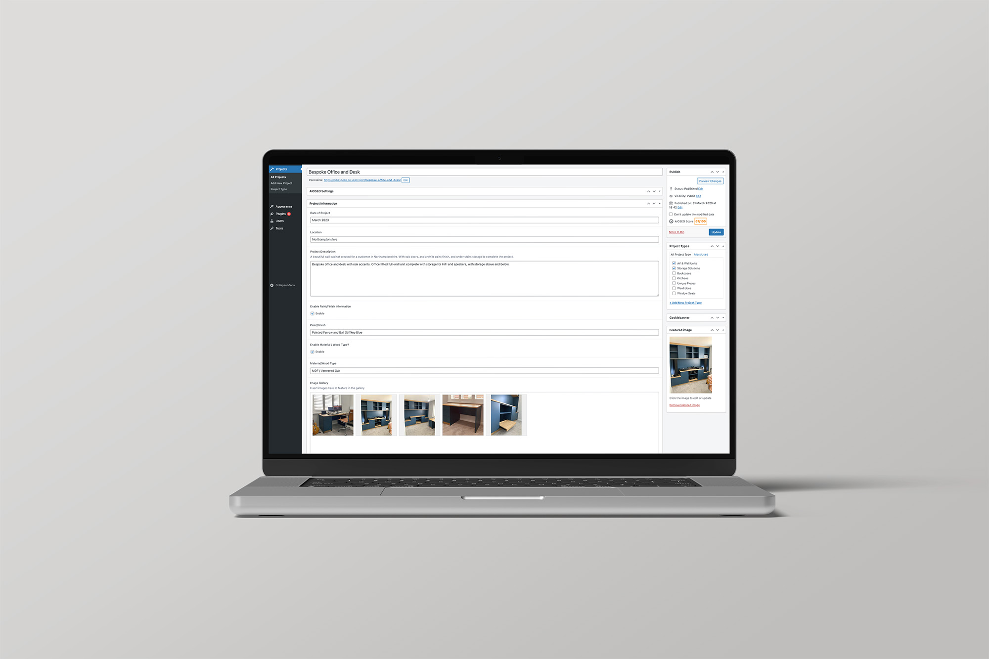MJ Bespoke approached Everclick with a clear vision: to create a website that made exploring their portfolio effortless for potential clients. Central to their business is the ability to showcase completed projects that inspire conversation and build trust with customers considering bespoke commissions. To achieve this, they needed an intuitive CMS that would allow their team to independently categorise, upload, and manage their growing body of work.